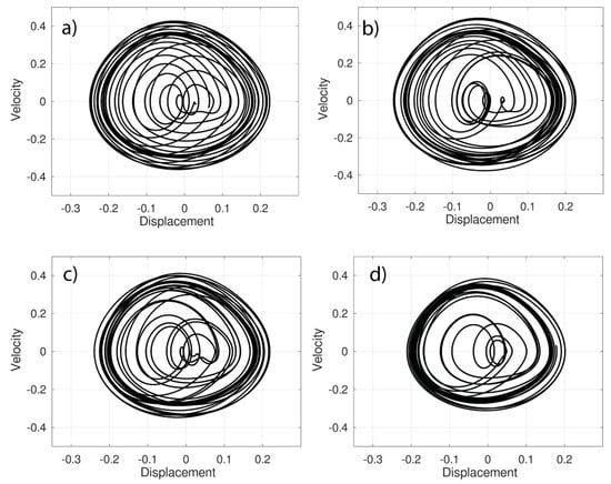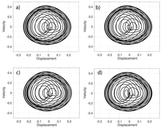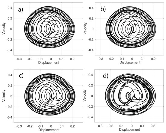 In Figure 5, we can observe the transition between the value corresponding to 1.5, Figure 5c, and the value 1.7, Figure 5d. In Figure 5b,c we can see that the orbits are distributed in two clearly differentiated zones, the periphery and the interior, while in Figure 5d the orbits tend to overlap.