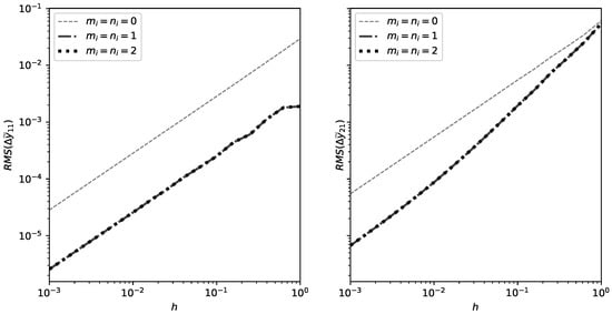 Theorem 2 shows that the connection defect converges (by assuming that the output equations are independent of the input signal), but does not show the order of convergence. The input assignment (15) suggests that the input signal depends on the order of the input polynomial as well as the connected output polynomial. However, Figure 5b shows a relationship between connection defects and an internal solver. The connection defect when using the analytic solver seems to correlate with the interpolation order and appears to be . In the case of the Euler solver, the connection defect seems to be limited to . The latter seems to be a consequence of (46).