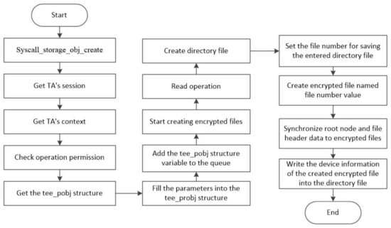 After the directory file is created, we start to create the key encryption file. The format of the encrypted file is roughly the same as that of the directory file, except that the data block stores the user’s key. The process of creating an encrypted file is shown in Figure 7.