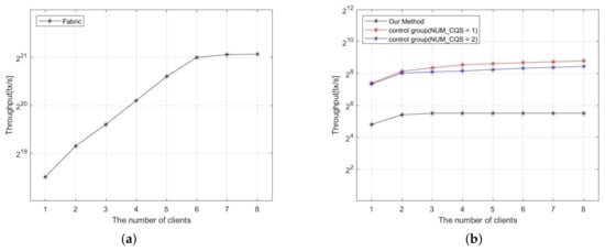 After writing the hash calculation results into the ledger, we measured the throughput of query transaction in our method, the control group and the native fabric. The measurement is completed by repeatedly querying the results on the chain in parallel for different number of clients (1–8) over a period of time. In order to verify the impact of TEE on system throughput, we set the control group. The control group implements the logic of TA in this scheme by CA, that is, it does not interact with TEE. The results are shown in Figure 10.