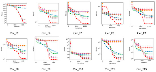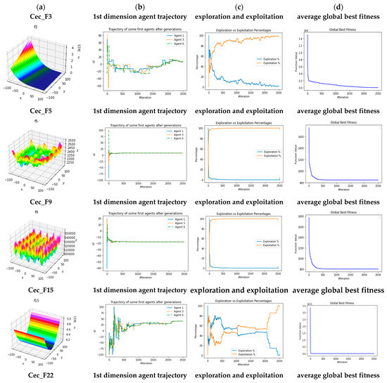 For comprehensive information on the CEC2017 benchmark functions, including their ranges, global optima, and other pertinent parameters, please refer to Section 5 and the CEC2017 benchmark function definitions document [53].