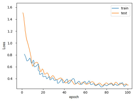 The number of training iterations is very important for training the deep learning network model. The number of training iterations can be determined by observing the changing trend of the curve of the training and verification sets during training. If the model’s performance is not further improved during training, training of the model will automatically stop after 10 additional training generations.