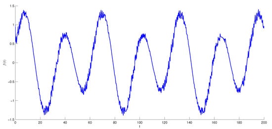 Discontinuous unpredictable function. Consider the function where is an unpredictable solution of the logistic Equation (21), is a continuous function, and h is a positive number. Assume that there exist positive numbers and such that and for each