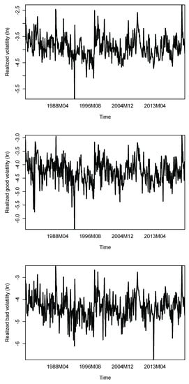 42] observed that market participants, in addition to the level of volatility, also care about the nature of volatility, with investors typically differentiating between “good” upside (calculated based on the sum of squared daily positive log-returns only) and “bad” downside (calculated based on the sum of squared daily negative log-returns only) volatilities. In light of this, we also predicted the logarithms of good and bad