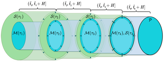 This implies that the feasible sets of the inner and outer approximations automatically define deterministic inner and outer enveloping tubes to the feasible set of the chance constraint over each prediction horizon (see Figure 1). These tubes guarantee the feasibility of the solution on each prediction horizon and will be made tighter by decreasing parameter τ by , from one prediction horizon to the next, yielding robust constraint satisfaction. The tubes are constructed automatically, which neither incurs additional computation expenses nor does it require additional assumptions to simplify the problem.