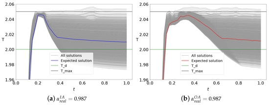 We implement and directly in the finite element code and solve them using Dolfin-Adjoint, which provides automatic differentiation and derives adjoint and tangent linear models from the FEniCS-based forward model for the gradient calculation. At each iteration of the optimization algorithm, of the PDE system Equations (2)–(4) will be obtained for each time instant of the random variable . N-times of solutions of the PDE are necessary, since is required to calculate the values and gradients of the cost functional in and .