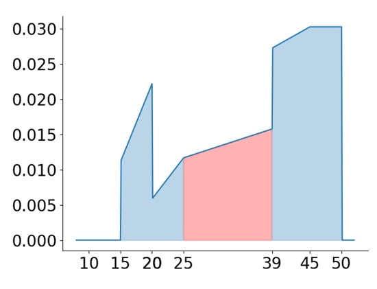 Figure 2 shows a graphical depiction of the PDF of the , which is directly obtainable from its equi-depth histogram. The integral in Equation (2), as well as the estimation calculated above using Algorithm 1 correspond to the highlighted area in the figure.