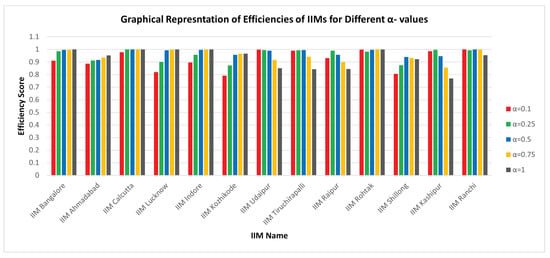 Graphical representation of efficiencies of IIMs for different - values.