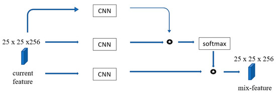 The feature map is generated from three different Conv layers, and is the weights of the corresponding points, where is the index of each pixel on , and j is the index of each pixel on . Here, is a scaling factor to prevent the exp function from overflowing numerically. Following [39], we set s to , where is the feature dimensionality of .