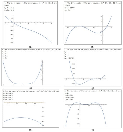 Figure 2 are perfect examples of the effectiveness of the analytical methods to solve the GCE and the GQE, which can be applied to give a more efficient solution to practical problems related to these kinds of algebraic equations; nevertheless, it does not mean that the program presented in