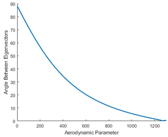 The angle between two eigenvectors can be derived from their scalar product. For two eigenvectors and , it can be expressed by the arc-cosine. If the two eigenvectors are real, the angle can be obtained using Equation (14) [30],