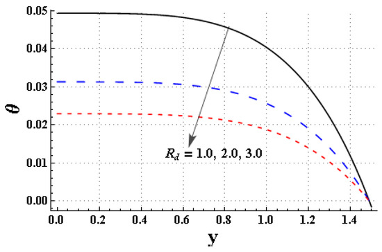 - Increasing the thermal radiation parameter enhances the heat-transport process of nanofluids.