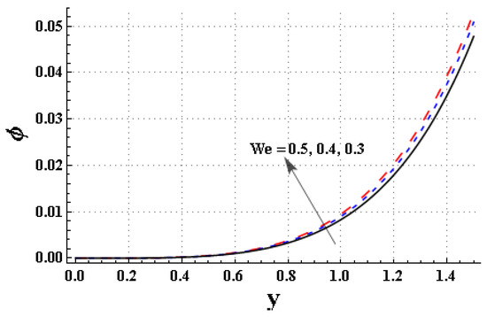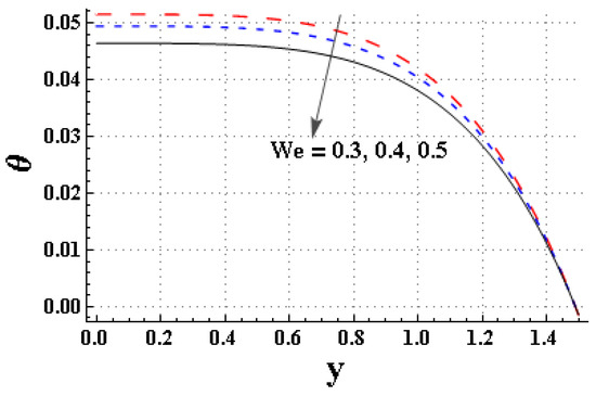 Effect of the Weissenberg number, , on temperature, .