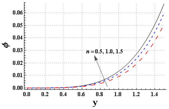 Effect of the power law index, , on the concentration of nanomaterials, .