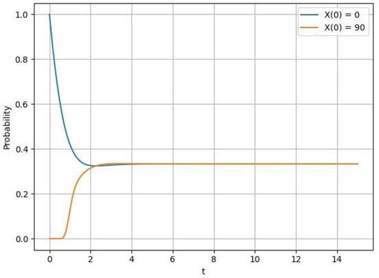 We managed to obtain exhaustive estimates of the rate of convergence to the limiting regime for the model using the C-matrix method and considered a numerical example where we solved the forward Kolmogorov system using the fourth-order Runge–Kutta method. Theorem 1 shows that the accuracy of the main estimate depends on the choice of the sequence , for .