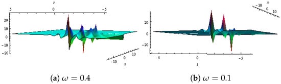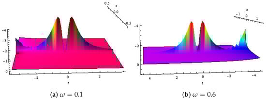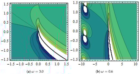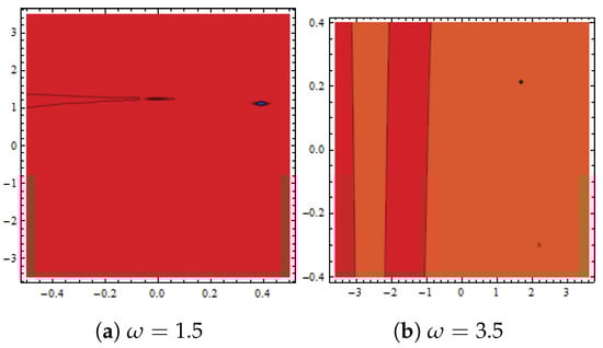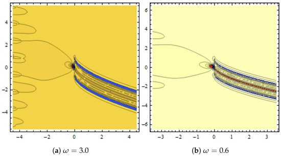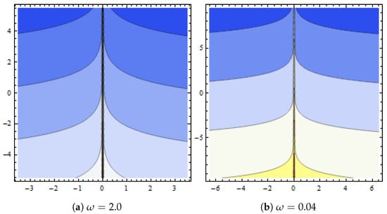 Dynamical demonstration of in Equation (50) presented with and (a,b) show contour plots for different .