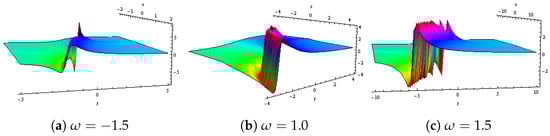 By using Equation (58) into Equation (15) and by comparing the coefficients of and , we get some values for the wave solution: