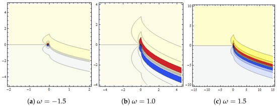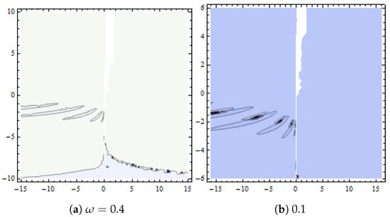 Dynamical behaviour of in Equation (32) presented with and (a,b) show contour plots for various values of