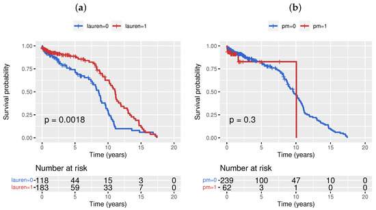 - : Lauren classification (1 = intestinal, 2 = diffuse), defined by a dummy variable (0 = intestinal, 1 = diffuse);