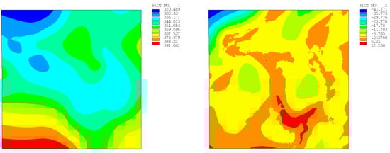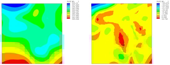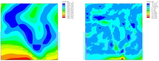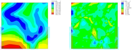 Other approaches could have been followed, such as using the Mindlin–Reissner plate theory [] (shell elements) or meshing the terrain using brick elements in one or several layers. These ideas were disregarded once the thin plate approach was tested, as the results provided were good enough and there was no need to increase the complexity of the model.