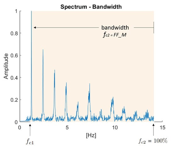 The selected frequency range is varied to reduce the number of features and sensors. The bandwidth is located within the range to of each frequency analysis, as shown in Figure 7, and these sets are expressed in Equation (15):