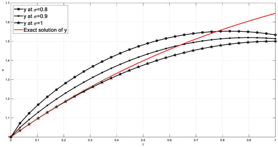 Therefore, the exact solution of Equation (24) at is given by the following formula:
