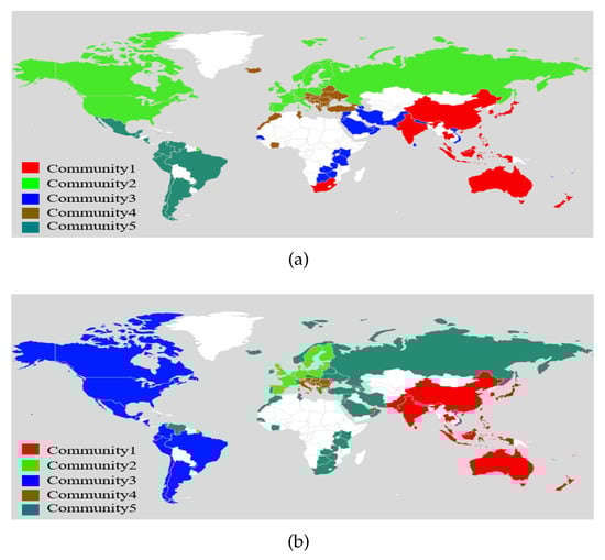 - Newman, M.E.J. Modularity and community structure in networks. Proc. Natl. Acad. Sci. USA 2006, 103, 8577–8582. [Google Scholar] [CrossRef]