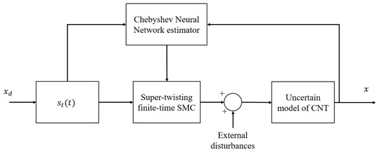 Figure 3 depicts the process of implementing the proposed control scheme that incorporates the ChNN estimator. By leveraging the ChNN estimator and super-twisting algorithm, the proposed scheme can achieve enhanced performance even when faced with uncertainties in the model and external disturbance. In the following section, we will employ this control scheme to regulate the nonlinear dynamic of the CNT.