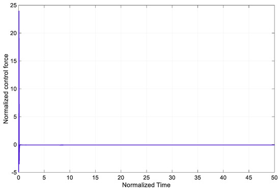 The results of numerical simulations that demonstrate the proposed control method’s outstanding performance on a CNT system are presented in this section. The system’s parameters that have been made dimensionless are = 0.001, , = 20, and . The proposed control technique’s parameters are selected using a trial-and-error approach that is notably straightforward due to the technique’s versatility across a broad range of parameters. This involves adjusting the control gains and evaluating the system’s performance until the desired level of performance is attained. However, to achieve the best possible performance with this controller, it is advisable to utilize an evolutionary algorithm like a genetic algorithm to determine the controller’s parameters. This approach considers the convergence time and control input value as objective functions to optimize the controller’s performance.