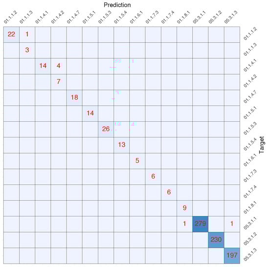 Another study on product classification for price statistics was described in []. Here, the author showed how different datasets from several sources were combined in a training dataset that could later be used for classification models. Only two classification algorithms were used, random forest and logistic regression, building the word embedding with count vectorization and term-frequency–inverse-document-frequency methods. On the test set, the best precision was obtained with random forest (0.87), and this method also had a better F1-score than logistic regression (0.86 versus 0.81).