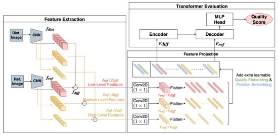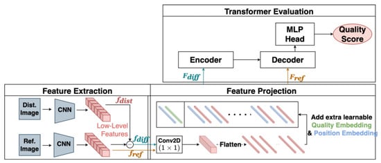 ViT models also extend from image classification and object detection (DETR) [44] to IQA such as TRIQ (Transformer in Image Quality) [45] and IQT-C [25], proposed in 2021. The team that proposed IQT-C, as shown in Figure 4, won the first in the 2021 NTIRE IQA challenge in the PIPAL dataset.