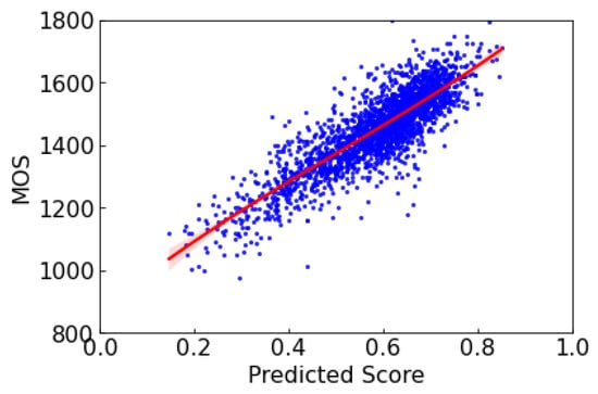 On the other hand, PLCC is sensitive to the difference between the ground truth score of MOS and the predicted score. In that case, we employed a nonlinear third-order polynomial regression to normalize the predicted scores on the MOS range scale [13,15]. In that case, the PLCC was calculated between the MOS scores and the normalized predicted scores.