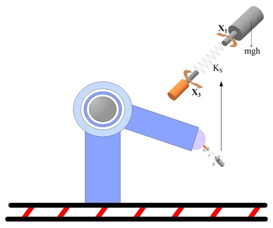 To tackle the problem of tracking control, the dynamic model of the single-link manipulator with flexible joints [41] (as shown in Figure 2) is used as a simulation model to analyze the method we proposed. From Figure 2, we know that the manipulator has two degrees of freedom, where x1 represents the rotation between the manipulator and the base, and x3 represents the movement relationship between the end-effector and the manipulator. Meanwhile, its model can be described as follows: