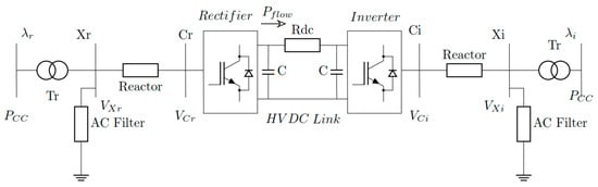 A point-to-point connected HVDC system consists of two converter stations, namely rectifier and inverter stations, as shown in Figure 2. Both converter stations are connected to AC systems on ‘r’ and ‘i’ nodes through filters and tap-changing transformers. Inverter station maintains DC bus voltage within limits and rectifier station controls the active power flow at specified value []. The power transfer in the system can be in either direction. In the previous research, the investigations have been carried out to optimize the controller gains to control the active power transfer in HVDC system []. HVDC problem formulation consists of the following steps.