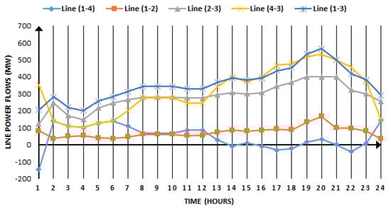 The load is connected to bus-3 and the daily load on the four-bus system is shown in Figure 5.