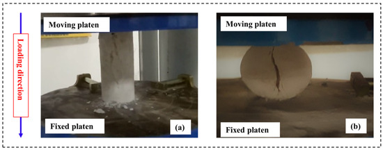 (a) Deformed rock core specimen for Brazilian tensile strength test and (b) deformed rock core specimen for UCS test.