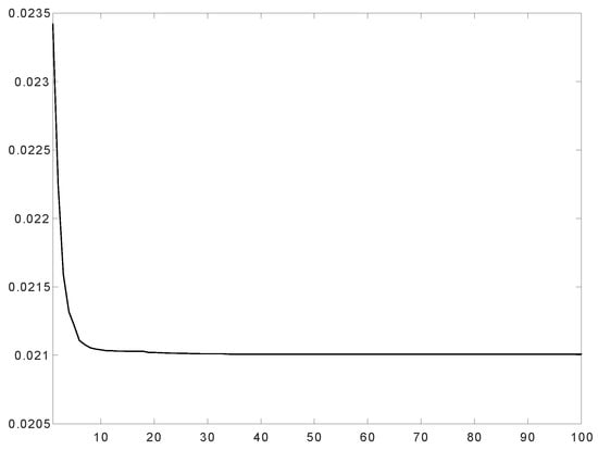 The speed of convergence is greatly influenced by the limits of variation given for the control. For some values of and the size of can be too small. This fact makes it necessary to perform a specific strategy to choose the size of the step. The example we now analyze is the same as in the previous case, only that the variation limits are The following Figure 7, Figure 8 and Figure 9 contain the graphs of the obtained results: