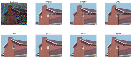 - Liu, J.; Musialski, P.; Wonka, P.; Ye, J. Tensor completion for estimating missing values in visual data. IEEE Trans. Pattern Anal. Mach. Intell. 2012, 35, 208–220. [Google Scholar] [CrossRef]