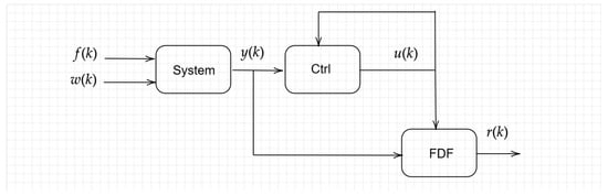 The block diagram of Figure 1 illustrates the FD scheme considered in this paper. Note that there are three elements composing the diagram: the system itself (, which represents the plant subjected to a fault), the controller , and the gain-scheduled FDF block .