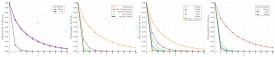 Based on the scales specified in Table 6, the scales Dangerous and Ruined should not be allowed to appear in the perspective of casinos, in which casinos could possibly go bankrupt within a month, particularly as per the gambling behaviour of Chinese people. Corresponding to Table 3, we can apply Equation (11) to the ROR probabilities generated by the Big Six game.