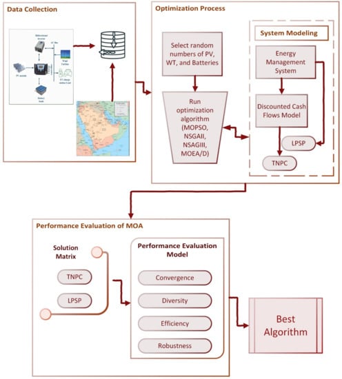 - Evaluation of four multi-objective algorithms based on criteria, such as convergence, diversity, efficiency, scalability, and robustness, to determine the most suitable algorithm for attaining the Pareto optimal solution for the PVWB/EVCS system.