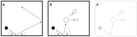 Criticisms of realism are not as devastating as they appeared at first glance, as seem in the previous section. So, where does mathematical knowledge come from? In our opinion, mathematical and logical knowledge is nothing but a highly formalized reflection, grounded in the physical laws of conservation. It is a picture of the physics of this nature. It relates to this world. Its necessity is conditional, that is, mathematical knowledge is just as much as the world is. It is a statement about the contingent; even if it is a necessary statement about the contingent, its necessity is limited by the contingency of the subject of the statement. This is a conditional necessity, and a conditional necessity is not necessity. The law of identity is a generalization of the observation that I am, that I am in a series of moments t0 … tn, that I am sustained in time, that the objects of my perceptions are sustained, that they last, that they are not multiplied, that they do not arise from nothing, that they do not disappear (but only transform). The whole world of conservation laws tells us about identity from the first moment—(matter and) energy, momentum, angular momentum, electrification are sustained. The world is sustained. The world is. The world is the world. A is A. The parallelism we proclaim here may seem counterintuitive, but it can be approached through a thought experiment. Let us imagine an extremely simplified version of our world (a world in which all conservation laws hold): an elastic ball bouncing off the walls of a closed rectangular container (Figure 3a). Although simplified, this representation of the world contains almost all conservation laws, and by observing it, the same laws of conservation could be inductively derived as in the case of our world. The conservation of mass and energy, momentum, and other conservation laws implies a series of regularities in the motion of this ball, including its inertial properties, the identity of the incident and outgoing angles, regularity in the evolution of its spatiotemporal coordinates, etc. In this experimental model-world, deriving the necessity of the law of identity would be just as justified or expected as in the real world. However, if we were to initiate a series of sequential suspensions of conservation laws, for example, remove momentum conservation, then energy conservation, etc., it would lead to seemingly “irregular” (compared to the rules of the real world to which we are accustomed) motion of the ball; it would begin bouncing at different angles, accelerating and decelerating, disappearing and reappearing, changing shape, size, and the number of copies of the ball (Figure 3b). Complete degradation of the laws of conservation would lead to a situation where the result of the model-world evolution becomes absolute chaos. All continuities and regularities would be eliminated, and all physical laws, in addition to the laws of conservation, would no longer apply. This suggests that the laws of conservation are a prerequisite for the possibility of physical laws, but this topic goes beyond the scope of this study. In order to consistently apply the suspension of the laws of conservation, we would also have to apply it to the observer–world system, not just the world, because we too are subject to its rules in this world. Even the observer would become temporary, losing the continuity of their physical existence and consciousness, including the consciousness of the experiment itself (in an idealistic interpretation, the elimination of consciousness would actually eliminate the model-world) (Figure 3c). Everything would disappear. The question is: would the law of identity still hold true in this new, chaotic, and unstable world? What would it refer to? It would not apply to any element in the model-world, even the model-world taken as a whole, because there would no longer be A and A, either in the sense of two separate objects or in the sense of one object observed continuously at different points in time. In the absence of introspective self-perception of the continuity of the observer’s consciousness, the law of identity could not even abstractly reflect that. Binary logic and its necessity would become pure convention, an abstract game of symbols devoid of any ontology. Binary logic would not contain in itself the power of its own applicability to this model-world, as apparently it is not its intrinsic property—it draws that power from the regularities which ultimately have their origin in the laws of conservation. In a completely different experiment, where we would not degrade the laws of conservation in the model-world, but instead replace them with alternatives of a completely different nature, say the rule that in successive moments of time the shape of a ball always changes to that of a cube, writing A = A would no longer have the same meaning.