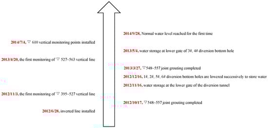 Furthermore, some scholars concluded that the valley’s contraction may also affect the deformation characteristics of super-high arch dams. Barla et al. [18] pointed out that the change in effective stress caused by water storage leads to valley contraction. Cheng et al. [19] and Li et al. [20] studied the influence of valley contraction on a super-high arch dam’s deformation and built detailed mathematical models. Hu et al. [21] considered the influence of valley contraction on dam deformation when establishing the dam-deformation prediction model. Over the past few years, many efforts have analyzed the genetic mechanism and deformation characteristic of valley contraction [22,23,24,25]. Currently, there is still a lack of studies focusing on the influence of valley contraction on super-high arch dams’ deformation characteristics.