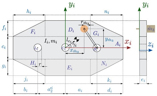 42]). The approach is stated as a mono-objective optimization problem tackled as a weighted sum approach. The Genetic Algorithm (GA) of Matlab is used to solve it. As the solution to this problem does not provide the shape of the link, another optimization problem is proposed to match the optimal link mass distribution. For this purpose, the dynamic parameters of the link are obtained from a link shape parameterized through cubic B-splines. Then, the second optimization problem consists of finding the Cartesian coordinates of the links formed by B-spline curves that minimize the error of the link inertia subject to the fulfillment of the other link dynamic parameters (mass and Cartesian mass center position). Matlab’s GA is also used to solve the second optimization problem. This two-stage optimization approach can lead to the degradation of the dynamic balancing due to the error detected between the link shape and the equivalent dynamic parameters. In [
