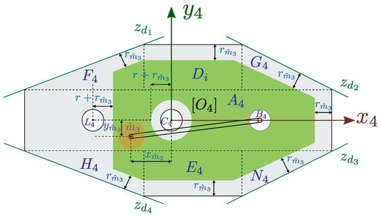 31], dynamic balancing is given by using specific trajectories, passive joints, and Fisher’s method. Other works include four-bar mechanisms in the development of the balancing of planar and spatial parallel robots [