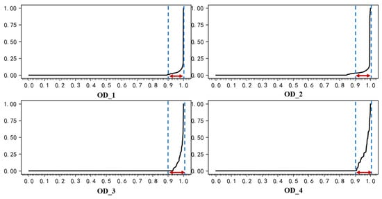 (4) Case analysis and validation. After visualization, the effect of bilateral fitting is obtained, and the relative threshold values for multiple ODs are calculated and analyzed. The consistency of the threshold quantile results for different ODs is tested to verify the rationality and effectiveness of the method.