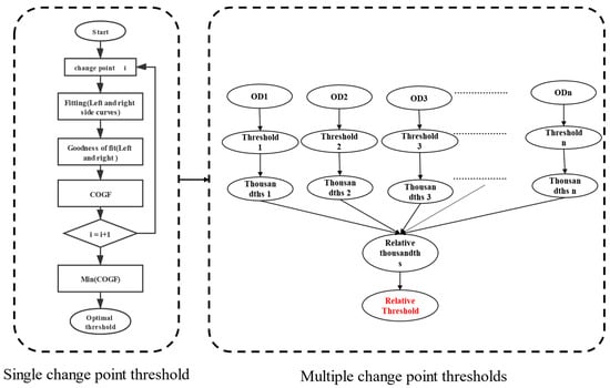 (3) This paragraph describes the method for calculating the relative threshold based on the double-sided fitting approach. First, the left and right sides of the curve data are separately fitted to determine the single OD threshold based on comprehensive fitting goodness. Then, the average percentile method is used to determine the relative threshold for multiple ODs.