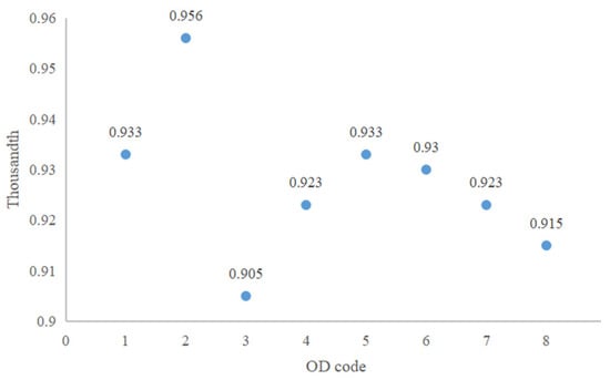 The threshold quantile reflects the proportion of abnormal passenger behavior in different ODs, and the proportion of abnormal passenger behavior seriously affects the quality of rail transit. The calculated threshold quantile mean for multiple ODs is 92.69%, which means that 7.31% of passenger behavior in rail transit is abnormal. This proportion is high, indicating low passenger service quality and generally poor transportation quality.