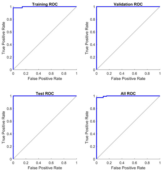 Varnani et al. [20] found a sensitivity and specificity of 93.6% and 80.0%, respectively, in a histological analysis of biopsies of suspected anal carcinoma patients. Van der Zee et al. [21] found a similar specificity (79%) when modeling the risk of anal carcinoma in HIV-positive patients using as an input DNA methylation data. Other authors have found similar results [22,23].