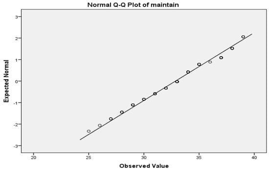 For additional visual validation of the result of the Lill normality test, we recommend the use of the quantile-quantile plot (Q-Q plot) visual representation [31]. The Q-Q plot is a scatterplot appropriate for normality visual appreciation. If the data are normally distributed data, the points should fall approximately along this reference line. The larger the departure from the reference line, the greater the evidence for the conclusion that the data failed the normality assumption.